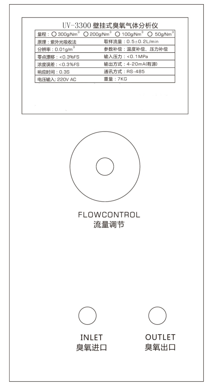 0-300g/Nm3 | 正压取样,带有压力,温度补偿 | 臭氧发生器出口浓度实时检测。 |
